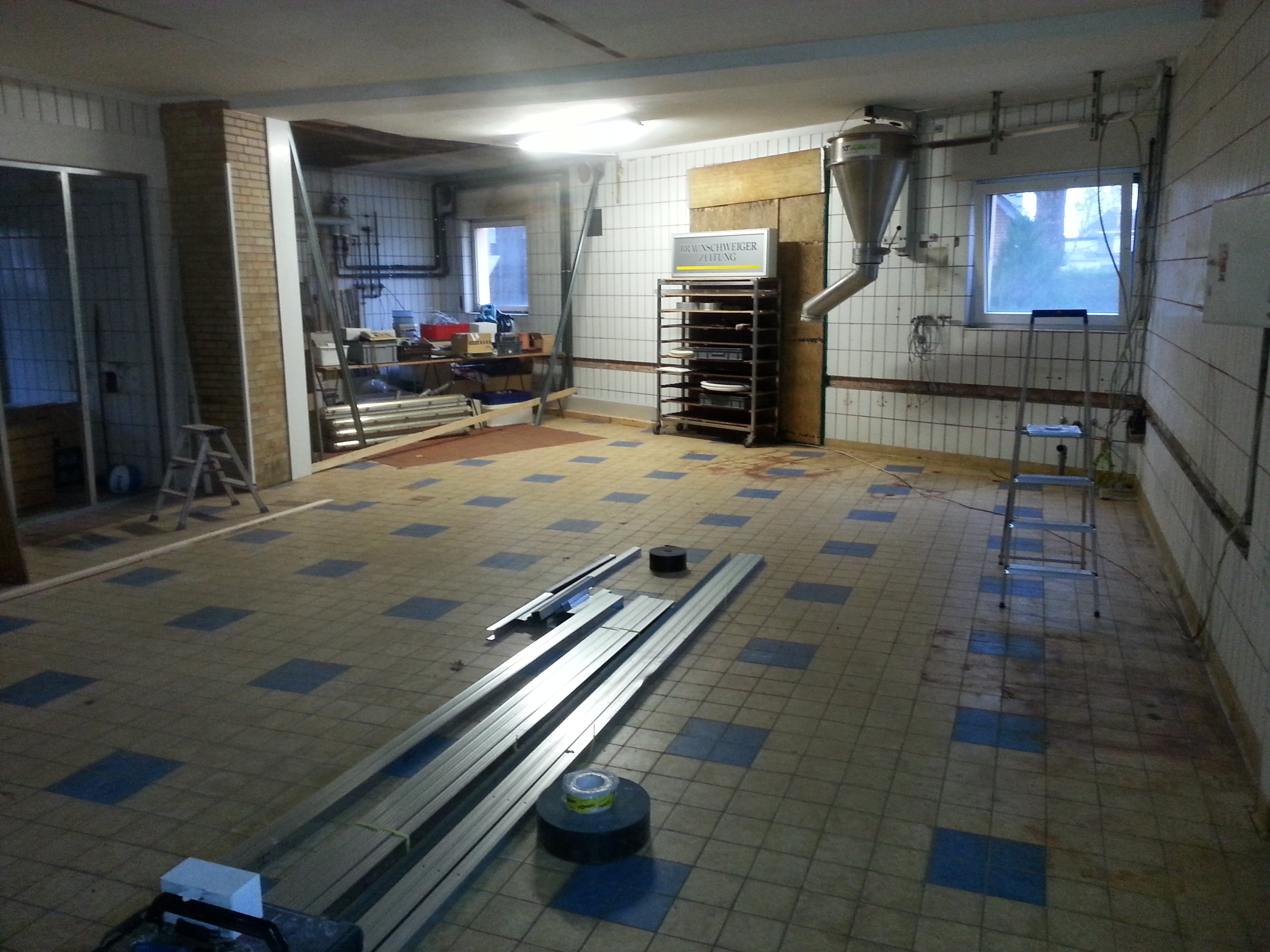 Die gesamte Bäckerei bot 220m², von denen wir uns ~65m² für unsere Zwecke abteilen konnten. Die Miete lag absolut im Budget.