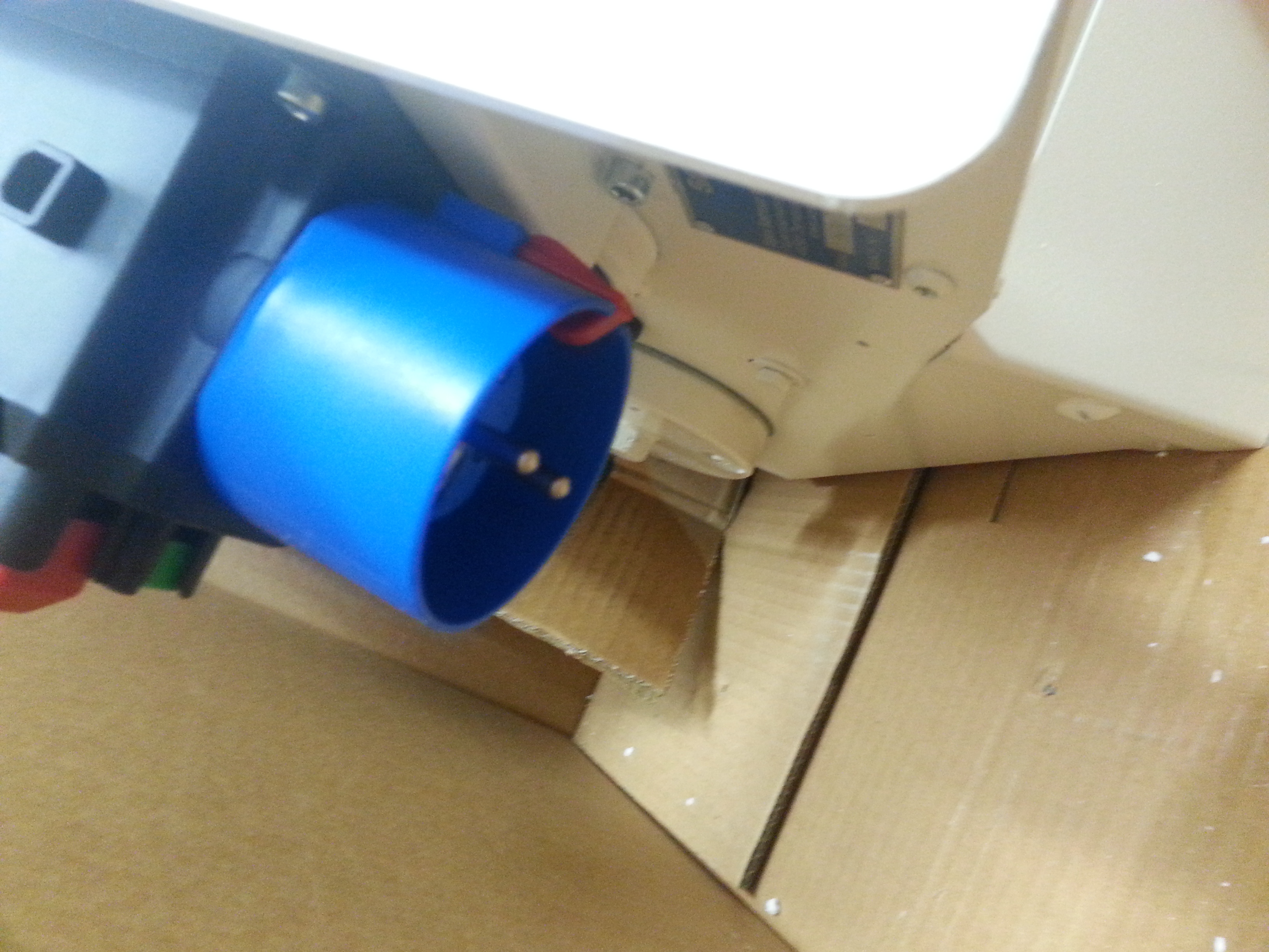 Okay, also schnell Lasse eine Whatsapp geschrieben, dass er ein Verlängerungskabel mitbringen möchte. Das tat er dann auch. Das nächste Problem war, dass dem Haferboy kein Befestigungsmaterial beilag 🙁 Es war mittlerweile 16.30h und in Schwülper ist es etwas dünn mit Baumärkten. Also wurde improvisiert und der Haferboy einfach auf das Board gestellt und mit Muskelkraft festgehalten….